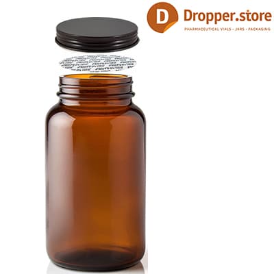 Amber Glass Pill Bottle 300ml TYPE III with Black Aluminum Cap & Press Liner for Pills , Tablet , Supplements , Vitamins , Capsules , Nutrition Powder | Pack of 12pcs