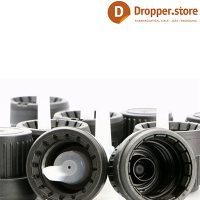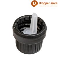 When the cap is unscrewed, the tamper-evident ring is broken and the insert remains inside the bottle opening. Matching bottles must have the correct neck finish specifically for this lid. It is designed for the glass euro style dropper bottle.
