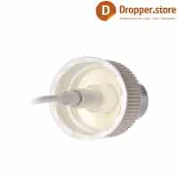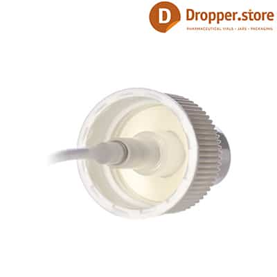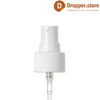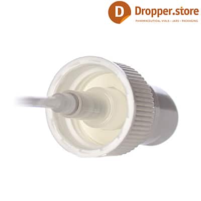 The Spray Pump PP24 in White Glossy Color | Ribbed Closure , with a transparent plastic dip tube and a transparent protective cover.