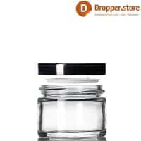 The Clear Glass Jar 20ml is an elegant cylindrical shaped jar, made of top quality glass. It is available with a smooth glossy black plastic lid and a PP liner type seal. Ideal for creams, waxes and in general for pharmaceutical & cosmetic preparations. cosmetic products, as well as all types of creams. It’s also a handy size for travel packing.